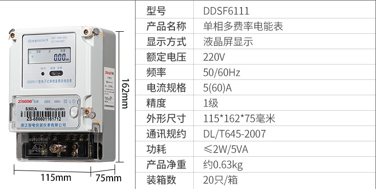 DDSF6111單相多費率電表 5-60A(2007規約)