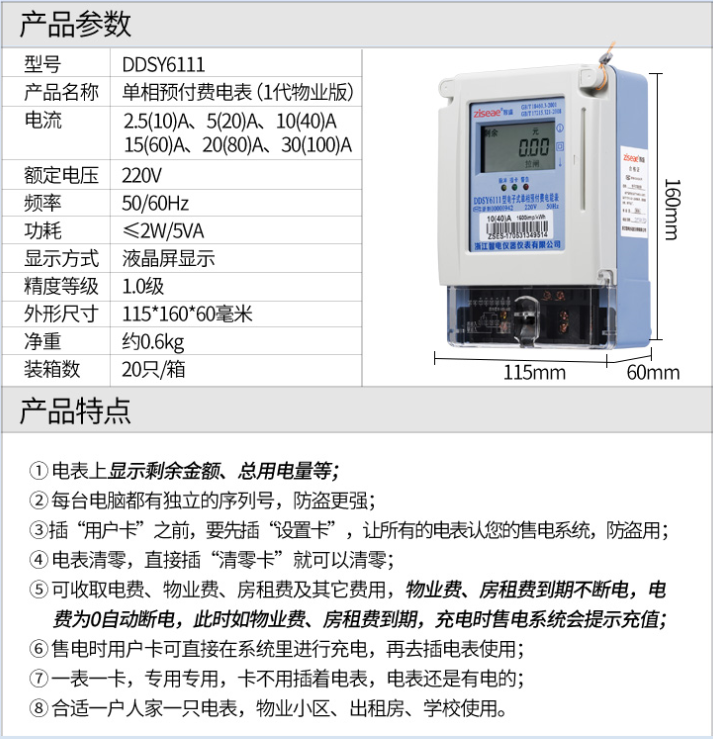DDSY6111型電子式單相預付費電能表,采用集成電路設計,全自動表面貼裝(SMT)生產工藝制造。電能表的線路設計和元器件選擇以較大的環境允差為依據,可保證整機穩定工作,精度高、高過載、低功耗,可靠性能高。內置磁保持繼電器。通過控制繼電器實現控制負載的通與斷,實現督促用戶先買電后用電的功能。